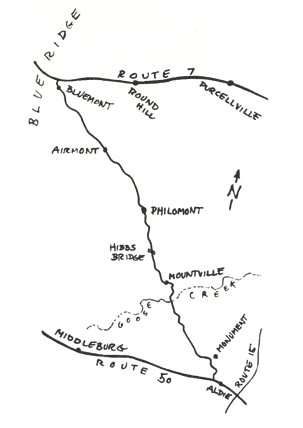 Here's a basic line art map of the turnpike (VA Route 734), and it shows the 'pike position within Loudoun County. It's a 15 mile journey along one of the most active commercial turnpikes of the 1800s. From north to south, starting in Bluemont, be sure to stop at the general store. Then the 'pike passses then through Airmont, where you will find another general store, and then on to Philomont. You'll cross Beaverdam Creek using the famous humpback Hibbs Bridge on your way to Mountville. Soon you will travel over Goose Creek and then arrive in Aldie, the southern terminus of the 'pike. Taking the 'pike from south to north, you will have the Blue Ridge Mountains as your backdrop for the entire ride! Online Maps Are you planning to travel the 'pike? Here are the modern online maps to help you find your way and other points of interest. Bing Map Google Map Wikipedia Info |
